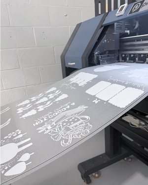 Printing – Print out your artwork on PET film with colored and glitter inks.